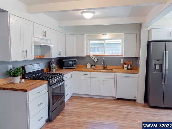 Fresh remodel on a generous sized lot w/ ample parking & possibility for a shop. Complete w/ new flooring, fresh paint, white shaker cabinets w/ butcher block countertops & gas range in the kitchen, & gas stove in the living room. Enjoy privacy of bedroom separation w/ the primary on the main level & the 2 additional bedrooms upstairs. The XL laundry room can double as a mud room w/ a door to the fenced backyard. Seller to contribute $6,000 towards buyers closing costs.