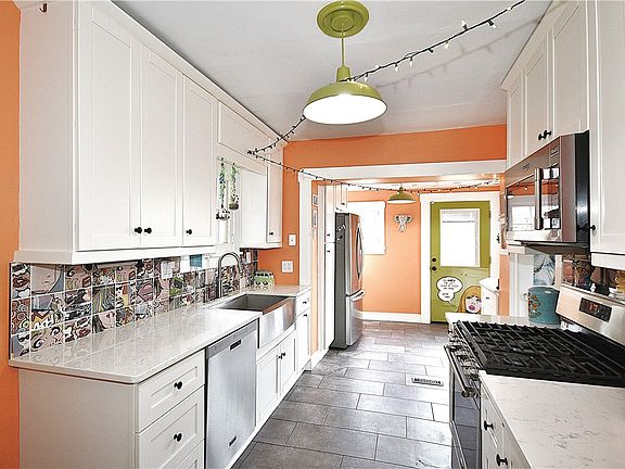 A beautiful and unique home located within a prime location for anyone that commutes to downtown Pittsburgh. Walking distance to the "T" and an easy drive into downtown even during rush hour! Torched floors and lots of personality this 3 bedroom, 2 full bath home comes with all the persoanilty and artwork included. It has an updated and remodeled kitchen with quality cabinetry, quartz countertops, stainless steel farm sink / appliances , and tile floor. A semi-finished basement with a full bath and laundry adds to the living space. The fenced in yard is a nice size for entertaining or keeping your loved ones contained within the yard! Come see this unique home before it's gone!