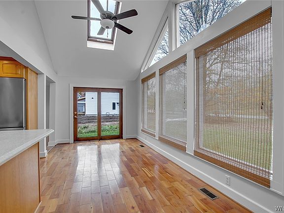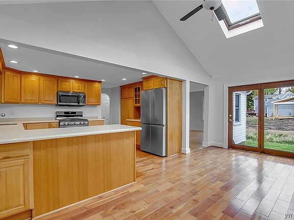 Welcome to 2375 N. French Road an adorable Cape Cod house with modern flair in East Amherst. This 3 bedroom 1 bath home is bright, open and set back from the road. The kitchen has a wall of windows, high ceilings with a sky light and feels very spacious. There are wonderful hardwood floors throughout the downstairs. The large living room has access to the backyard. The second floor has two large bedrooms with new carpet and storage. Freshly painted. Mostly newer windows. New refrigerator. Two car garage. Moving made easy!