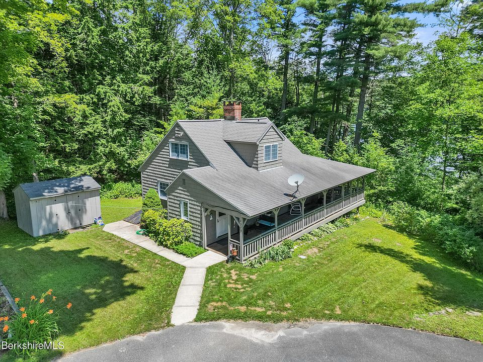 Lovingly cared for over the years with many updates. Open front porch and screened in porch with mahogany flooring. Galley style kitchen with laundry, first floor bathroom and first floor bedroom. Large open dining room/living room with fireplace and woodstove insert. Enclosed four season sunporch with secondary heat source, Vermont Casting propane gas stove. Second floor offers two bedrooms, one w/en suite. Full basement with concrete floor, bulkhead. Oversized detached two car garage with loft, built in 2001. Central air, oil heat, propane hot water heater. Driveway is on Old State Road, put in 101 Old State Road Otis into GPS, house across the road.