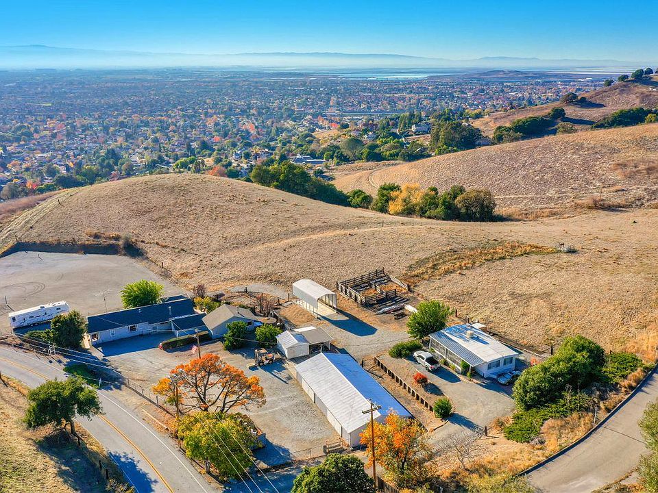 One of the best view estates in all of Milpitas. Build your dream home on 10 acres of mostly flat or gently sloped buildable land, with an existing approximately 1,100sf 2 bed, 2 bath home (buyer to verify), detached garage, large workshop, RV Parking, large parking area, mobile home, canning room and BBQ area. Take in the 360 degree views of the bay, Milpitas, and interior foothills. Water includes a deep private well, natural spring, and potential access to a Delta water pipeline. Propane and existing septic onsite. Possibility to keep existing home as an ADU and build your dream home. Close to downtown, shopping, restaurants, and freeways. So much potential and a must see!
