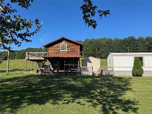Beautiful setting just minutes away from Highway 421. This spacious 2Bed2Bath singlewide has updated flooring and huge front and side decks. With an acceptable offer the home will have a brand new Heat Pump installed as well. 12x15 storage building. Old tobacco barn converted to rustic cabin with a bathroom and potential for a bedroom. This property would be perfect for an Airbnb with it being just minutes from the North Wilkesboro Speedway, Amish Market, and surrounding vineyards and wineries. Schedule your appointment today.