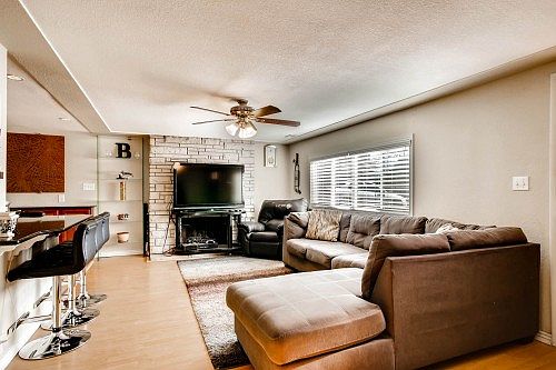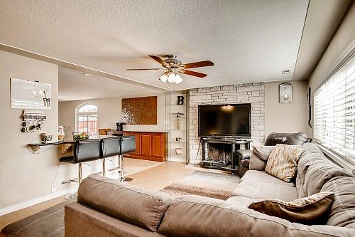 Beautifully remodeled home with granite counters, travertine tile, hardwood floors, stainless steel appliances, updated cabinetry and paint throughout. Open floor plan with eat in kitchen inside and covered back porch off the dining space. Newly remodeled basement with Jack and Jill 3/4 bathroom. Newer high efficiency washer and dryer, new furnace, new air conditioner along with a newer roof on the home and shed. Located near parks and recreation centers along with a great location to highways and thruways, this is a move in ready home with great appeal. Tour this property while it lasts.