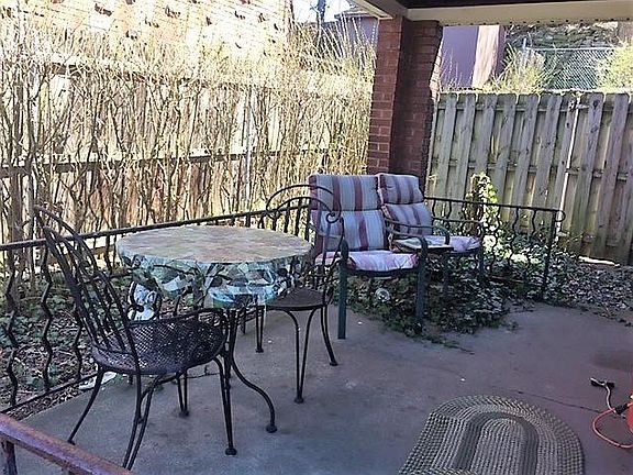 Charming brick house with a fenced yard. Two flat areas in the yard. Lovely patio on the side of the house. Large living room and separate dining room. Nice size bedrooms with ample closet space. Updated bathroom. Central air. Original woodwork and wrought iron handrail. One car integral garage AND an additional parking pad.