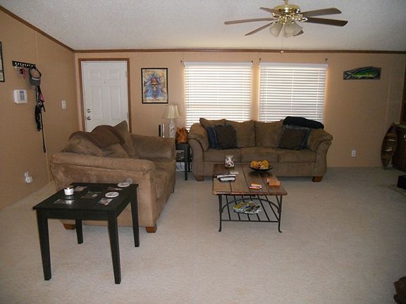 2.6 acres of country living. Large, open double wide mobile home with high ceilings, open kitchen with large island that looks into the living room. Split plan with master on one side of the home and the 3 other bedrooms and a huge bonus/recreation room with a wet bar, on the other side of the house. Wood Burning Fireplace. Apple, lemon, tangerine and pear trees in the yard. A big portion of the lot is cleared but a large portion is still wooded and private. New deck w handrails and new walk way. New Berber carpet in bedrooms. Seller has taken very good care of this property and is ready now to let someone else enjoy it. It's just too big now. Buyer & Buyers Agent to verify all info.