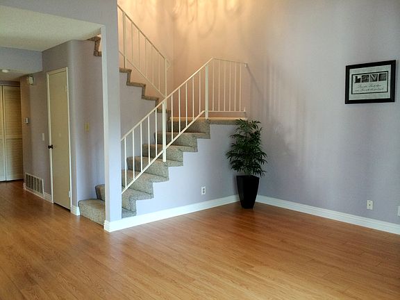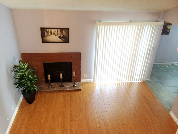 • Great 2 Story Townhouse for Sale • Bright & Airy End Unit! • Beautiful Wood Flooring Just Installed. • Newer Energy Efficient Dual Pane Windows. • Custom Interior Paint • Living Room with Cathedral Ceiling & Fireplace, Spacious Kitchen Open to Dining Area. • 1 Bedroom and 1 Bath on Main Level, 2 Bedrooms and 1 Bath Upstairs • Nice Sized Private Patio • 2 Car Garage with Roll Up Garage Door • Laundry Unit Inside. • LOW HOA DUE $200/Month, • Close to Fwys, Schools and Parks