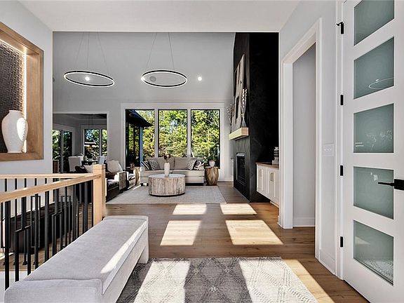 Furnished Model Now For Sale! Exceptional Reverse 1-1/2 story on a huge wooded lot at the end of a cul-de-sac & backing to protected greenspace. Main level features soaring ceilings and walls of glass that take advantage of spectacular views. Rare plan offers 2 bedrooms plus a third Bedroom/office on the main level. Finishes are second to none with custom trim and detail throughout. The great room features vaulted ceilings, floor to ceiling tile fireplace, and unique wood beams. The kitchen is a chefs delight with a large center island complete with waterfall edge quartz tops, professional size stainless refrigerator/freezer, prep kitchen w/ 2nd oven, sink, and walk-in pantry. The breakfast room features a box vault ceiling w/ custom beams and 12' sliding doors that leads to a huge covered deck complete with a fireplace and large grilling area. The master suite includes a double box vault ceiling, spacious bathroom with an oversized zero entry walk-in shower w/ dual shower heads, freestanding tub, and tiled wall accents. The second bedroom on the main level leads to the covered deck and includes its own full bath. The main level study is accessed through a set of glass doors and conveniently located next to the garage and mud room. The lower level features 10' ceilings with great views and is designed for entertaining w/ a large rec room, gaming area, and full bar. Three additional bedrooms can also be found in the lower level each including their own full bathroom plus an additional guest bathroom for privacy. The oversized garage is suspended creating an incredible unfinished flex space with large windows in the lower level. This executive home is now available for sale and won't last long!