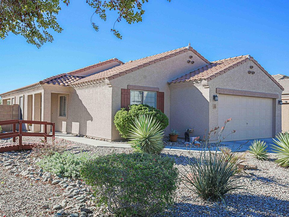 Check out this clean, updated single family home in Buckeye's quiet community of Riata West. This 4 bedroom, 2 bath home features an open concept living room with vaulted ceilings and eat-in kitchen. Step outside to take in the spacious backyard + view fence. No back neighbors! Backyard faces community green-space/walking path. Recent improvement include: NEW HVAC installed 2021. Water softener system and reverse osmosis systems, installed 2021. Home's exterior was painted in 2020. Let's talk about location...home has easy access to the I-10 Freeway, and a growing number of retail and dining options on Watson Rd. It's just 15 mins to Skyline Regional Park, an 8,700 acre preserve located in the White Tank Mountains. Home can be conveyed to Buyers, fully furnished! Schedule your tour today!
