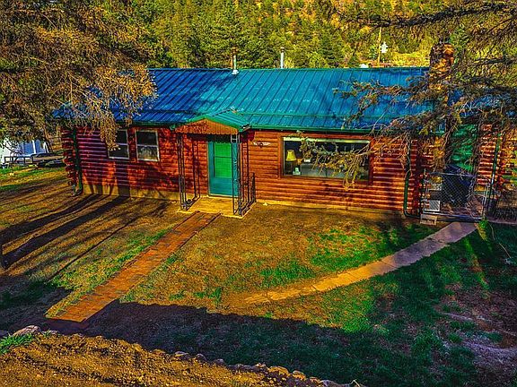 Rare opportunity!! Beautifully updated full log home on 3 acres in Wetmore, Colorado! Come enjoy the ranch life in this feature loaded property offering 534 feet of Hardscrabble Creek flowing through the property, towering Ponderosa Pine, open pastures and mountain vista views! Inviting 2 bedroom, 1 bath full log home has been well cared for and offers beautiful tongue & groove pine walls & ceilings, stone fireplace with warming pellet stove, beautifully updated kitchen with tile flooring, butcher block counters, stainless appliances and rustic back splash. Updated bathroom with marble tub enclosure, stylish vanity and title flooring. Roomy bedrooms and large laundry room. All the buildings have been updated with long life metal roofing, Outside you will find a 16 x 48 pole barn for storing the different vehicles, tractors & ATV's used for the ranching life, Rustic 4 stall barn with interior hay storage, greenhouse, 10 x 16 storage shed and a 10 x 18 bunkhouse/shed. RV parking & fenced pastures. Wonderful country living only 15 minutes from Florence & 30 minutes to Pueblo. CTme Ready