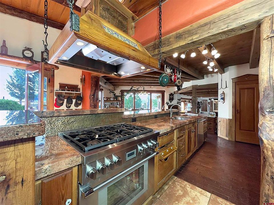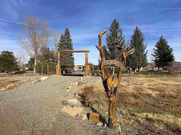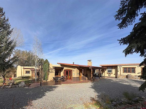If high quality custom features in a home that celebrates the history and natural resources of the Ouray, Ridgway and Telluride areas is important to you, this masterfully created Rocky Mountain Southwest Style home will quickly become your new favorite retreat in the Uncompahgre Valley! It's located east of the little town of Colona on 2 irrigated acres, and offers stellar Cimarron and Sneffels Range views. The original builder was much loved homebuilder-Kurt Quadri. The current owners-also well-known throughout the area, have taken it to the next level. Throughout the home they've reached a level of quality and uniqueness that is unmatched. You'll love the 18 inch thick true adobe walls and blacksmithing features. Antique woods and stone from famous and sometimes 'infamous' structures have been integrated throughout. This is one of those special spots where you spot something new and lovely each time you walk through. The entry into the 2 acres is prominent-with remote iron entry gate leading into a circular drive that provides access for your guests and your toys. You'll especially enjoy the landscaping features-with beautiful trees, stone and relaxing patio areas offering huge views of the mountains and Uncompahgre Valley. Entry is through two very special antique doors-the one off of new covered concrete patio is from a famous hotel-check it's doorbell inset into the door handle! The other on the south side leads into the richly warmed porch through the refurbished door of the Ridgway Fire Station! Either approach leads in to an incredibly comfortable and rich mountain space. The east entry leads into a sitting room with a massive stone true fireplace-highlighted by a mantle taken from the ridges overlooking the Ridgway Reservoir-do you see the whale? The glorious gourmet kitchen has some of the finest granite you'll see, along with fully outfitted cabinets and pantry areas. These are gracefully outfitted with antique wood fronts with copper accents. The nearly new Thermador range and oven is impressive, as are the other quality appliances. Be sure to check out the gallant hood-unlike any other that you'll see. In addition to the custom woodwork and metals you'll love the inlaid handmade tilework and inset hammered copper along its perimeter. The nicely sized dining area is fully surrounded by windows and rich woods for full views to the south and east. The living room is down just two steps and is so gracefully appointed. The floors are richly finished brick, and the integration with the soft warmth of the adobe bricks is especially inviting. The home has three kiva style fireplaces-this one has a beautiful Hearthstone woodstove back vented for energy efficiency and beauty. The three fully appointed bedrooms each have private baths, and you'll have a difficult time determining your favorite! The primary bedroom is roomy and has patio doors that open to a lovely concrete patio on the west side of the home. Its bathroom is beautifully appointed with antique inset features and walk in showers. The guest bedrooms are similarly styled-with tumbled travertine flooring-beautiful antique woods and even the antique marble sink from the Herron House in Ridgway-Infamous! While this home is unlike all others, perhaps the setting and features of the two acres will be of primary interest! There is an oversized garage area with woodshop and studio/craft area, a 4 stall storage building outback that would be horse friendly-there is no HOA! You'll absolutely love the craft and workshop building-currently used as a blacksmith shop. All this located located just 20 minutes from Montrose or Ridgway, one hour from Telluride and just minutes from thousands of acres of public lands. Make your plans to come see this impressive home today. Be sure to take the time to soak in the very special features and make it your year-round forever home or your seasonal escape.