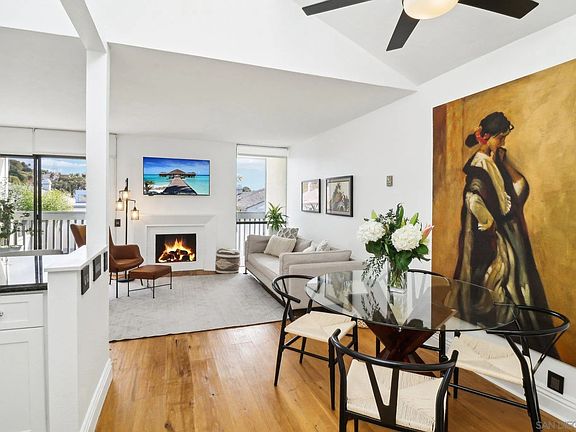 Step into style, comfort, and functionality in this stunning townhome-style retreat nestled in the heart of La Costa! This light-filled two-story haven features a vaulted ceilings, an inviting open-concept layout, hardwood and marble flooring throughout, and multiple outdoor spaces to soak in the coastal air. The expansive primary bedroom on the first floor offers a private patio, perfect for morning coffee or unwinding at the end of the day. Upstairs, the bright and airy living space boasts a cozy fireplace, an adjacent dining area, and seamless indoor-outdoor flow to another private out door space- balcony. The updated kitchen is designed for both aesthetics and efficiency, featuring granite counter tops, backsplash, updated kitchen utilities, newly added dishwasher, and a built-in coffee bar just around the corner to start your day. With two full bathrooms (one on each level), an in-unit laundry closet, ample storage, and a versatile office nook on the main level, this home effortlessly blends convenience and charm. Whether you're working from home, hosting guests, or simply relaxing in your sunlit sanctuary, this space adapts to your lifestyle. Located minutes from top-rated schools, shopping, dining, and world-class golf courses, this home presents an unbeatable opportunity to experience the best of coastal living.
