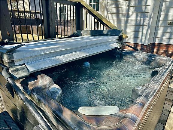Possible 2nd chance on this home. Get ready. Exciting one-level home in Kernersville is a sweet retreat - inside & out! From the New Large Deck - enjoy the soothing bubbles of the Hot Tub surrounded by paving stones & a fire pit for relaxing. Enter through the welcoming double doors to the entry porch, great spot for coats & shoes! Then you’re greeted by an open, light filled great room with some fresh paint & nice flooring—no carpet in this home! So many nice touches - Contemporary Fireplace & Volume ceiling - in a warm & inviting atmosphere. Primary bedroom offers a generous walk-in closet. The en-suite bathroom features a separate shower & garden tub. Two-car garage includes exterior door & pull-down attic steps leading to a partially floored attic. New Discovery - HVAC vent in garage! This vent has a cover on it but consider the possibilities. Electric Fence, & Storage building to remain. Low county taxes too. Easy access. This home is truly one beautiful package. NO HOA.