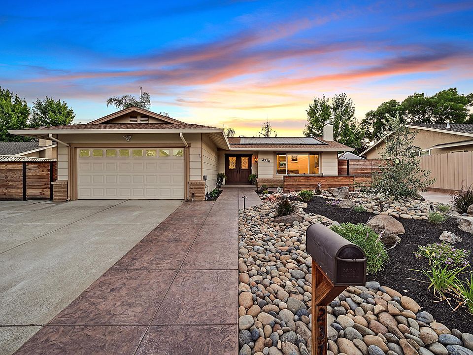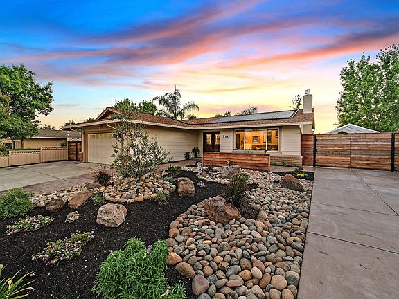Welcome to 2376 Farnsworth Dr, an exquisite ranch-style home in Livermore’s Meadows neighborhood. This beautifully updated residence spans 1,488 sq. ft. on a spacious 7,200 sq. ft. lot. The inviting open floor plan seamlessly connects the living, dining, and kitchen areas. The living room features a cozy fireplace, perfect for gatherings. The kitchen boasts stunning quartz countertops, a matching backsplash, and a bar area ideal for casual dining and entertaining. The home’s three bedrooms offer serene retreats, and the two bathrooms are elegant, with standing showers and premium fixtures, creating a spa-like atmosphere. Hardwood flooring adds a touch of sophistication to every room, enhancing the overall aesthetic. The backyard is a private oasis with a solar-heated swimming pool to extend the swimming season, built-in BBQ, and a pizza oven. The pool and landscape lighting create a magical ambiance for evening gatherings. The home has a solar and battery backup system, ensuring power during outages and the capability to charge your EV, resulting in low utility bills. The front yard is thoughtfully landscaped to be drought-friendly. A large storage area on the side of the home ensures space for outdoor equipment. Don’t miss the opportunity to make this stunning home your own.