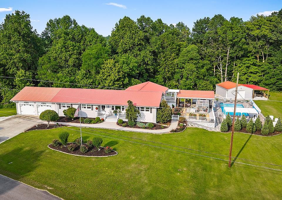 Tucked away on over 6 private acres, this one-level home is an entertainer's dream! Enjoy the 20x40 saltwater pool, hot tub, covered pavilion, and sunroom with a built-in bar—perfect for hosting year-round. Inside, you'll find real hardwood floors throughout and a huge updated primary suite. The property also features a detached shop, raised garden beds, and a greenhouse. Everything is meticulously maintained with thoughtful upgrades like gutter helmets, encapsulated crawlspace, two septic cleanouts, newer HVAC units, pullout kitchen shelving, and a trash compactor. Bonus- a 50amp plugin and added driveway space for your camper/rv! Just minutes from Hidden Harbor Marina on Center Hill Lake, this property offers space, privacy, and endless possibilities.