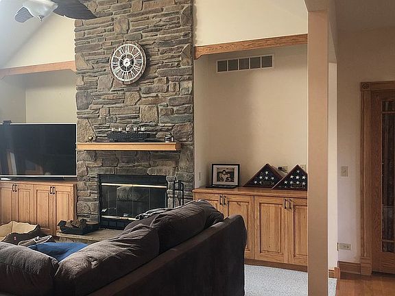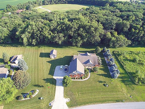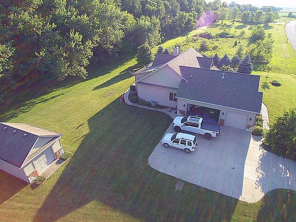 Beautiful custom home on one acre lot. Very private backyard backing up to the woods, this is a very well built home. Solid wood doors throughout with the perfect floor plan having the Master Suite on one side of the home and the other two bedrooms and bathroom on the other side of the common areas for privacy. Gas starter fireplace allows for no hassle fire starting on those winter nights. Partially finished basement includes a finished bathroom with a large closet as well. Oversized 3 car attached garage (30 foot depth and 8 foot tall doors) with an additional detached garage for your lawn equipment and to avoid the clutter which allows lots of space for parking. Attached garage has gas heater, ceiling fans, and tall enough ceiling for a lift as well as upstairs storage room. Come check out the detail and amazing craftsmanship of this home!! Moving out of state for new job!! Make an offer!! Won’t last long!! Please feel free to contact me call or text 608-397-1944