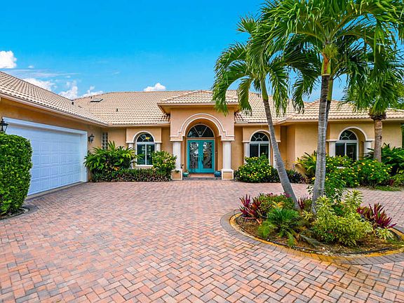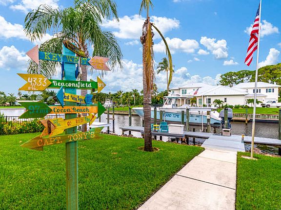 Tropical Paradise with a gorgeous waterfront view! 3 bedroom 3 bathroom pool home w/ large dock and 2 private boat lifts - 20,000 lb, 12,000 lb. NEW UPDATES - New A/C (2020), Outdoor kitchen w/ grill station, pool resurfaced (2020), refrigerator, bar, fire pit (does not convey), fence, and newly installed 4 ft rebar concrete SS aircraft tie downs for RV pad. BONUS- A/C workshop in garage. Martin County School District. Close to shopping, dining, and parks!
