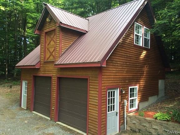 Rustic inspiration for this custom built cedar-sided home comes from its own 2.5 acre wooded setting. Blending perfectly into the surroundings this home's covered front porch connects to 2 side decks - great spaces for outdoor living, grilling, hot tubbing, entertaining and access to private back yard. Open kitchen & dining concept. Private living room. Hardwood floors first level. 1st floor bedroom and bath. Spacious, insulated walk-out basement. BONUS FEATURE: Two-car heated garage with large workshop/studio on full second floor.