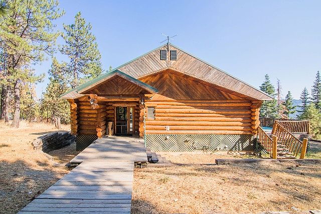 Unique opportunity in Cedar Ridge Subdivision. Located on 5 acres. This contemporary home features log cabin style mixed with rock. 2 bedroom 2 1/2 baths. Incredible views.
