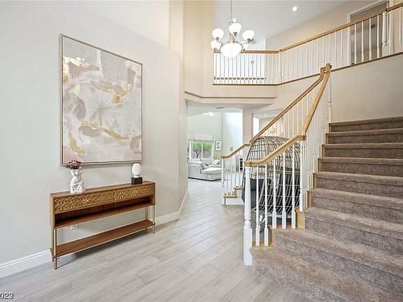 Welcome to your dream home in the heart of Green Valley! This exquisite two-story residence combines transitional style w/exceptional features. Upon entering, you'll be greeted by a spacious & inviting living area adorned w/newer flooring, exuding a modern charm that seamlessly flows throughout the home. The kitchen is a culinary enthusiast's dream, featuring sleek countertops & top-of-the-line appliances such as a brand new Fotile Range hood. The second story boasts new top of the line luxury mohawk carpeting w/well-appointed bedrooms.The backyard is an entertainer's delight, featuring a sparkling pool, perfect for cooling off on hot summer days. This home also boasts state-of-the-art air conditioning units & an energy efficient tankless water heater. Located in one of Henderson's most desirable neighborhoods, this home offers easy access to shopping, dining, parks, & recreational activities. With its convenient location and upscale amenities, this property can’t be missed!