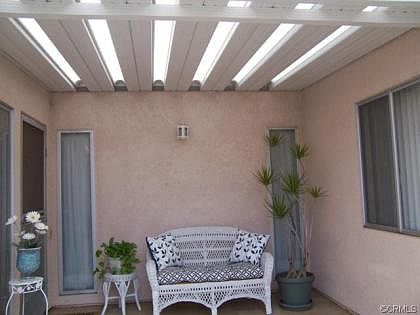 Ceramic tile in entry, dining and kitchen area. Very private- upgraded kitchen with granite counters, scraped ceilings in living room with recessed lights and crown molding. Stacked wsher/dryer. Great back patio partially enclosed.