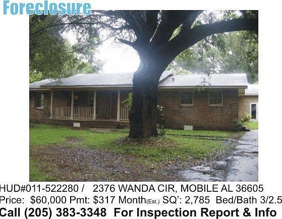 This 2876 square foot single family home has 4 bedrooms and 4.0 bathrooms. This home is located at 2376 Wanda Cir, Mobile, AL 36605.