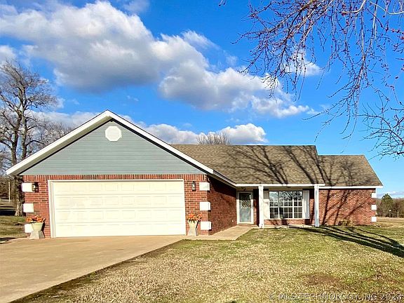 Beautifully updated home on 2.5 acres in Fort Gibson. Remodeled kitchen features a large island with granite countertops and new stainless steel appliances. A sweet little breakfast nook offers morning sunrise views while the formal dining area features big, beautiful windows to watch the sunset. Home has two living areas, 3 bedrooms, 2 baths and an additional space between the living areas that could be uniquely used to fit your needs! The master bedroom features a large ensuite with his and her walk-in closets, a walk-in shower and a private jacuzzi tub. This home is an outdoor lover's paradise with room to grow, roam and make it your own! All of the joys of country living while being 15 minutes from town. Enjoy your new home by this Spring!