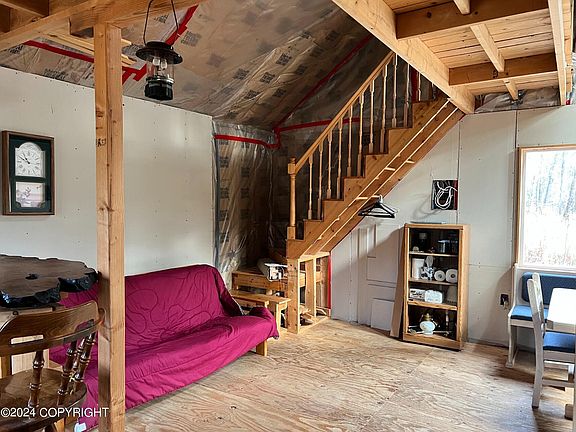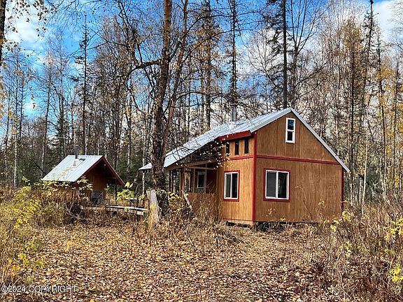 Escape to your Alaskan retreat with this charming 16x20 cabin, perfect for weekend getaways. Inside, you'll enjoy abundant natural light, a propane stovetop, and a wood burning stove. The loft bedroom is a cozy space with upper deck access. The detached sauna is beautifully crafted with tongue-and-groove cedar. Included is the outhouse, woodshed & generator. Surrounded by nature, this is the..perfect spot to disconnect and recharge. Ready for imitate use! Enjoy making the space your own with upgrades and property improvements. Lots of land space to build more or invite family/friends to pitch a tent for the weekend.