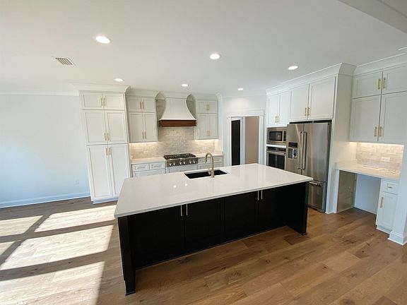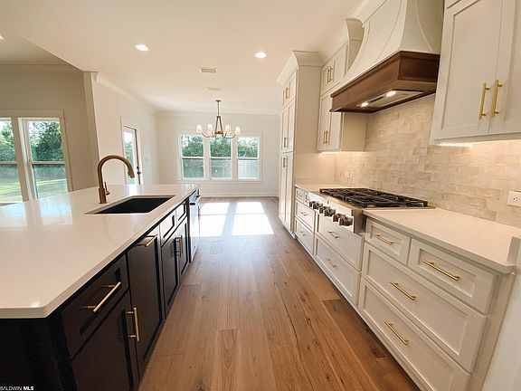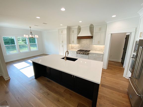 Brand new construction in Cypress Village built by Limitless Homes! The spacious, coastal charmer makes living near the white sand beaches of the Alabama Gulf Coast even better with its gorgeous finishes and oversized lot with plenty of privacy. The kitchen opens to the breakfast area and living room to make entertaining easy and also features quartz countertops, black Siligranit sink, gorgeous tile backsplash, easy-access drawers and Kitchen Aid appliances including 6-burner stove and refrigerator. The 4-bedroom split layout features master suite downstairs, two bedrooms on the opposite side of the house and another full bedroom and bath upstairs. The designated office off the living room offers additional multi-purpose space. Additional perks include gorgeous hardwood floors throughout the first floor, tons of storage space, extra cabinets, high-end tile with feature wall in the master bathroom, a 3-car garage, water hookup for commercial ice maker in the garage, designated space for beverage cooler in kitchen, elevated lighting fixtures throughout and much more. Conveniently located toward the front of Cypress Village, this home has trees along the north and west property lines and is part of the four-home cul-de-sac, Conifer Court. Also located near Orange Beach City schools, Gulf State Park and its walking & biking trails, shopping, grocery, dining, entertainment and the beach, this home is the perfect retreat while keeping close to all the amenities you could want. Other conveniences include neighborhood pool and lazy river, builder’s warranty, 12-month termite bond, Gold Fortification and storm protection system for added protection. Projected completion is August 2023.