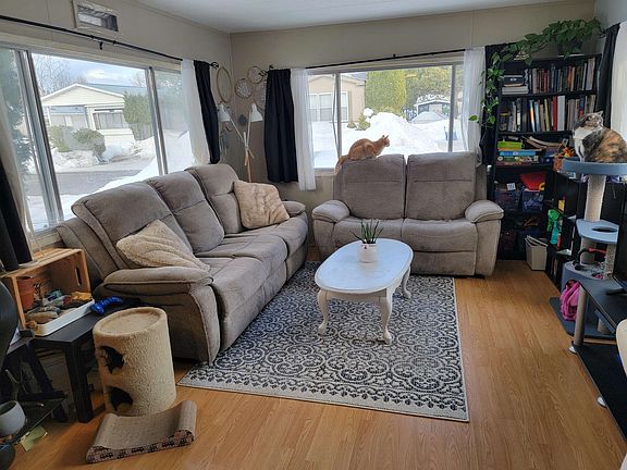 It doesn't get much more affordable than this! This cute 3 bedroom mobile in Southland Mobile Home Park features updated electrical, a fully renovated bathroom, new kitchen counters and flooring and a super private covered back deck. The yard is fully fenced with a storage shed. Located close to major shopping and schools, why rent when you could own your own home?