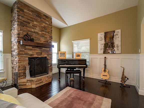 You will love everything this 4 bedroom 2 3/4 bath open concept floor plan has to offer! From the stunning entrance with elegant living and dining area, which includes impressive stone fireplace, to the more casual wide open great room with tons of bar seating, the rooms flow together very nicely and make it the perfect home for entertaining many family and friends. The cook in the family will love the huge kitchen with an abundance of granite counter space and also includes stainless steel appliances. You must also see the impressive, spacious downstairs bonus room w/professionally stained cement floors that could be a work out room, game room, or office. The huge secluded master suite takes up one side upstairs and features a serene spa-like bath with soaking tub & separate shower; walk-in closet. Gorgeous wood floors, canned lighting, tons of storage & laundry upstairs. This beautiful home has easy access to Highway 180 and is located in the award-winning Sanger School District.
