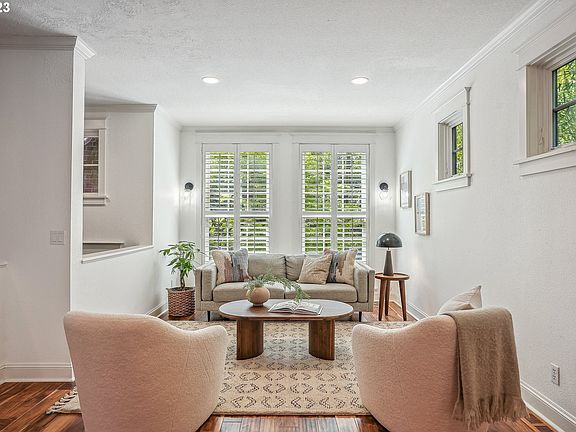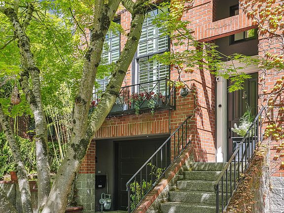 Extremely rare & beautiful Brownstone tucked above NW 23rd! Reimagined city living with modern construction, amenities, garage, studio space for the perfect work-from-home situation, and private back deck. Sophisticated floor plan with refreshed kitchen opens to a family room & terrace. Upstairs includes primary en-suite with brand new remodeled bathroom, 2nd bed with private bath, 3rd flex/office space, and new carpet. Incredible natural light brightens the entire home. Newer Cabinets and quartz countertops with tile backsplash. New can lights, paint, & back deck. Smart Home integration throughout. This is an end unit, biggest of the bunch. No HOA! Located in the heart of the historic NW District with a Walk Score of 98, surrounded by Portland's best shopping and restaurants, and Forest Park!
