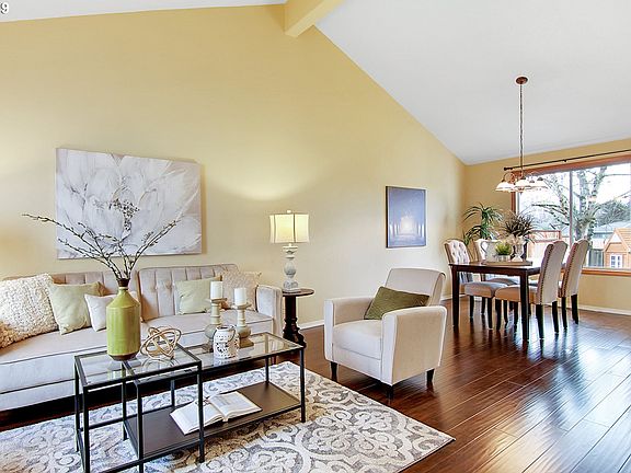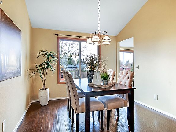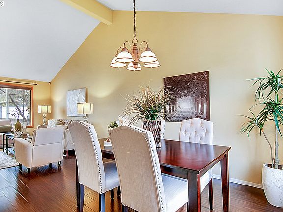 Beautiful, move in ready home with newer laminate flooring and vaulted ceilings on main level. Open kitchen with eating bar, pantry & recessed lighting adjoins cozy family room w/wood fireplace. Slider to private fenced backyard facing green space. Master bedroom has cove ceilings, en suite bathroom & walk in closet. Furnace & A/C approx 3 yrs old. All appliances included! Close to high tech & shopping.