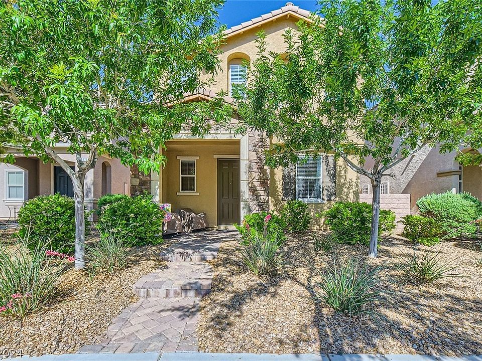 This stunning home is nestled in the sought-after Inspirada masterplanned community. With 4-bedrooms & 2.5-bathrooms & 2,350 sq ft of modern living space. As you step inside, you're greeted by an open-concept floor plan that seamlessly blends the living, dining, and kitchen areas, perfect for entertaining. Downstairs den enclosed w/ double door perfect for office, playroom, or 5th bed! Gourmet kitchen w/ oversized island features SS appl. & quartz counters. Spacious primary boasts a walk-in closet and a luxurious en-suite bathroom with dual sinks & soaking tub. The additional bedrooms are generously sized, ideal for any lifestyle. Private patio yard with a covered patio offers a serene retreat for relaxation and outdoor dining. Residents of Inspirada enjoy an abundance of community amenities, including parks, pools, playgrounds, courts & walking trails. With its prime location near shopping, dining, and top-rated schools, this home is a true gem. Lowest price 4-bedroom in Inspirada!!