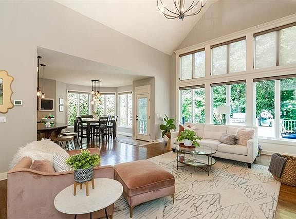 STUNNING REVERSE 1.5 STORY IN FOREST VIEW!! * WOW! * GREAT NATURAL LIGHT!! * AMAZING outdoor living spaces huge composite dry deck system w/ built-in gas grill, overlooking private woods w/ fire pit & great hammock trees!; covered river stone patio below w/ FP, TV, speakers, built-in fans & heaters * GORGEOUS vaulted, open flowing great rm w/ floor-ceiling stone FP * BEAUTIFUL kitchen w/ granite, SS appl * home office * W/O LL fam rm w/ cool bar * large BRs w/ walk-in closets * LL has 3 BRS/2 full baths * Home gym