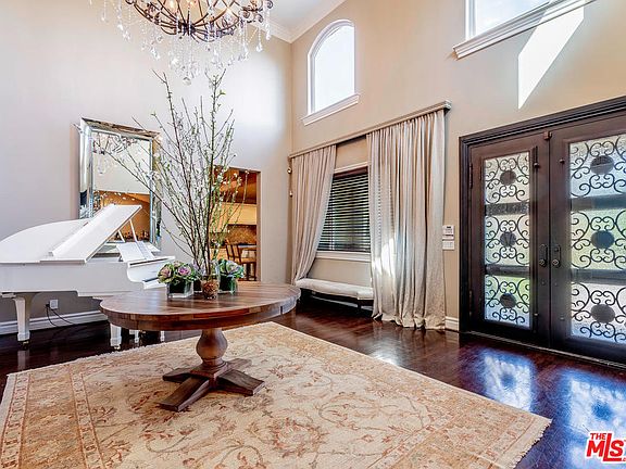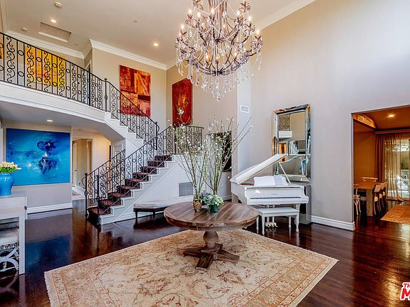 Located in the prestigious, guard gated, equestrian community of Hidden Hills. Situated on over 1 acre of mostly flat land, the open floor-plan features 5 bedrooms, 4 baths plus study. A grand entry leads to a formal living, dining and family room with vaulted beam ceilings, hardwood floors, spacious gourmet chef's kitchen including a large center island, a kitchenette and opens to an outdoor dining area. The upstairs master suite is complete with his and her walk-in closets, a cozy fireplace, large balcony, and a spacious master bath. An expansive yard with multiple sitting areas, BBQ and full outdoor kitchen is complete with pool, spa, fire pit, miniature golf, and kid's play area. The home is equipped with solar panels. Best priced home in HH! Don't miss it as this one has it all. Move in ready.