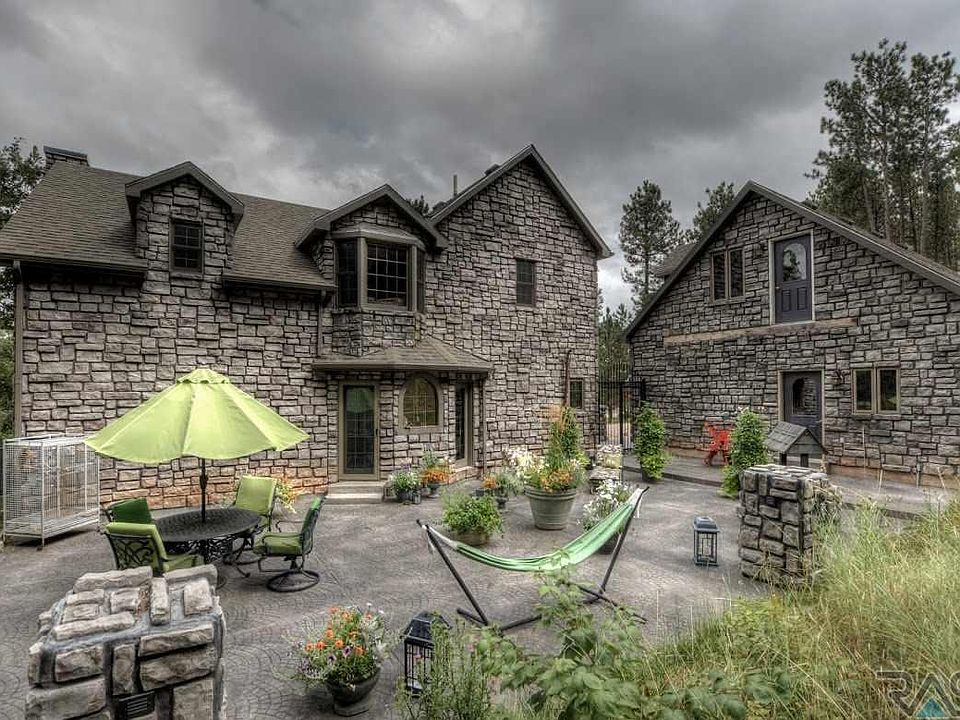 Be the King and Queen of the castle in this stately European Style Manor! This impressive 1.5 story home is wonderfully tucked back in the pines on 3.52 acres just minutes from Rapid City. Grand arched solid wood doors welcome you into the home. With 3448 square feet, 4 bedrooms and 2.5 baths, you will have ample room for family or guests. Warm, natural light flows through the large windows in the living room and formal dining room. The kitchen showcases a breakfast bar and breakfast nook, cooktop range, built in oven and hardwood cabinetry. Convenient main floor laundry, large office and half bath complete the main floor. Upstairs you will find the spacious master suite with two closets, master bath with jetted tub, shower and double sinks. A beautiful sitting area and a second bonus room are also located upstairs. This stunning property nestled in the beautiful wooded Black Hills is the perfect place to call home. Seller's Agent is related to the Seller.