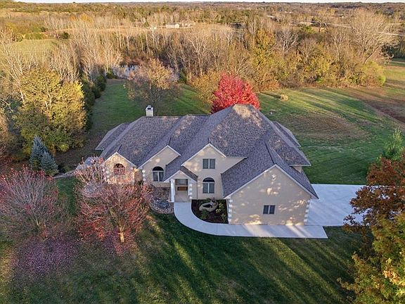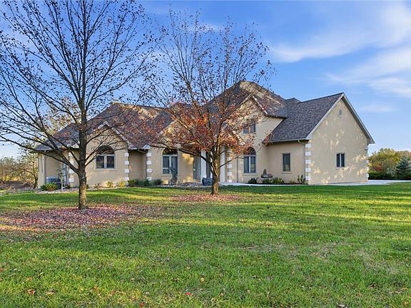 Call the family! HOLIDAYS ARE AT YOUR HOUSE THIS YEAR! A beautiful home, a shop, a pond and almost 8 acres is the setting. You have to see this home in person to appreciate its warmth. Spacious areas spread throughout the home that welcome friends and family. This 1.5 story home is well thought out with an excellent floor plan. It’s been recently updated with a new beautiful composite deck, new roof, new security system, refinished hardwood floors, new carpet, new paint, new septic and a new winding concrete drive to the house and shop. Over 5000 sq ft of living space. Vaulted ceilings, granite counters and a huge pantry! You won’t be disappointed! 3 bedrooms upstairs and more flex room in the walkout basement with a wet bar and sauna to entertain and watch those games! Almost 8 acres to play outside including a stocked pond and wooded areas to explore! Close to Hillsdale Lake, Olathe and all amenities of the city but country living and privacy! Be sure to watch the video!