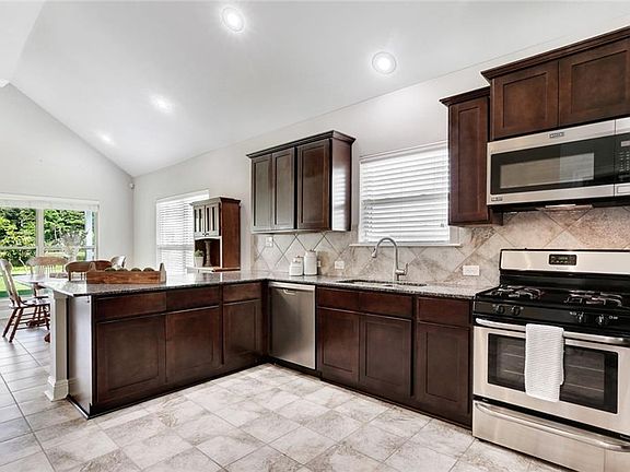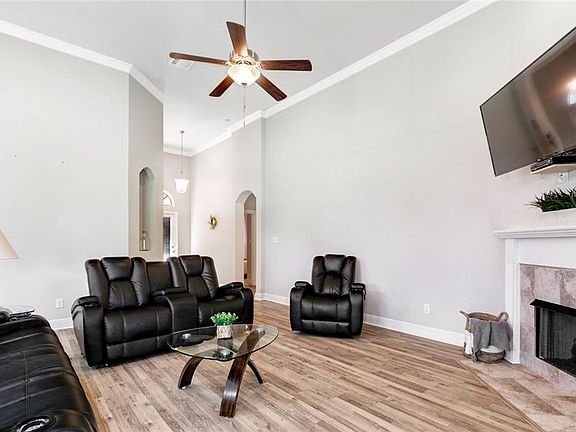 Beautifully kept 3 bed/2 bath home with your own serene view! Enjoy the stocked pond & green space from your covered back patio located on a quiet cul-de-sac. Flood zone X! 13 ft Ceilings in kitchen & living area! Kitchen Features SS Frigidaire Appliances, granite countertops, large pantry, & great natural light. Split floorplan. Primary bathrm includes Large walkin closet, soaker tub, separate shower, & double vanity. 2 car garage along w/ shed in the backyard for plenty of storage! WHOLE house generator!