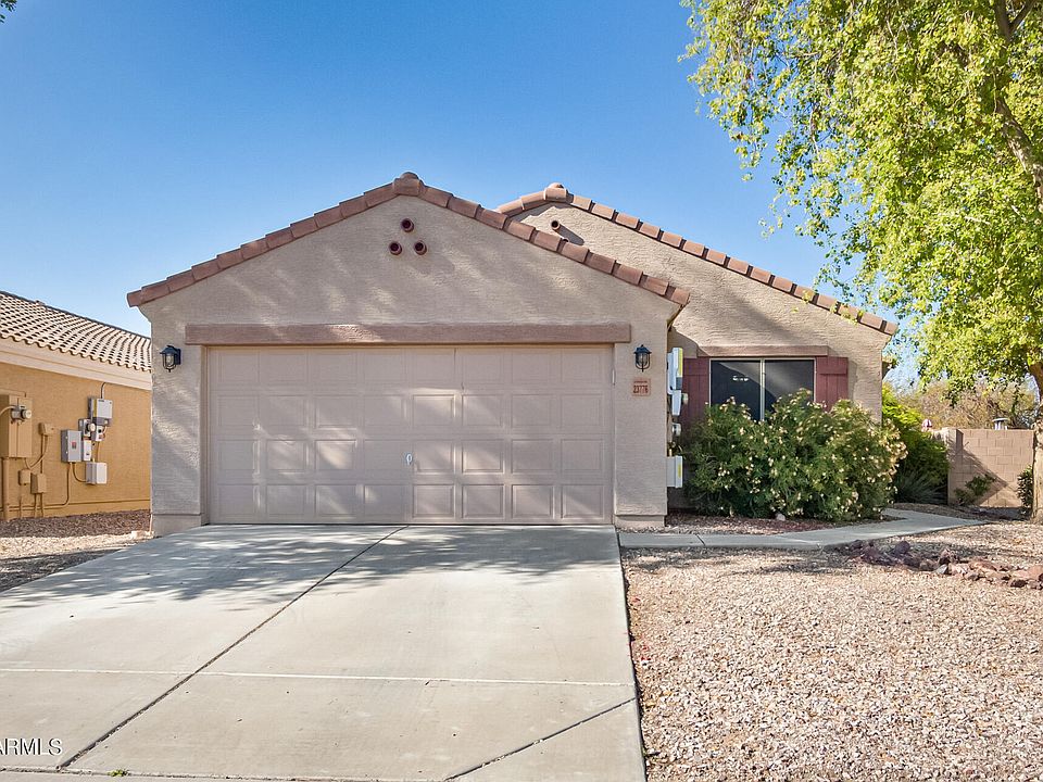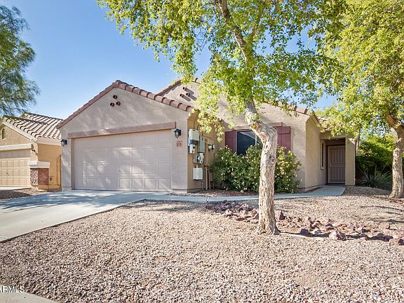 Seize the opportunity to own this charming 4-bedroom property in the desirable Riata West! It offers a 2-car garage, and paid off solar panels! Discover a spacious open floor plan featuring vaulted ceilings, a cool palette, tile flooring, and plush carpeting. The inviting living room has sliding glass doors that merge indoor and outdoor living, making entertaining a bliss. The kitchen provides built-in appliances, white cabinetry, track lighting, ample counter space for meal preparation, and a handy pantry. Relax after a long day in the cozy main bedroom, which includes a private bathroom and a walk-in closet for added comfort. Vast backyard has a covered patio, pavers, a fire pit, and lots of space for memorable gatherings. This lovely abode is waiting for you!