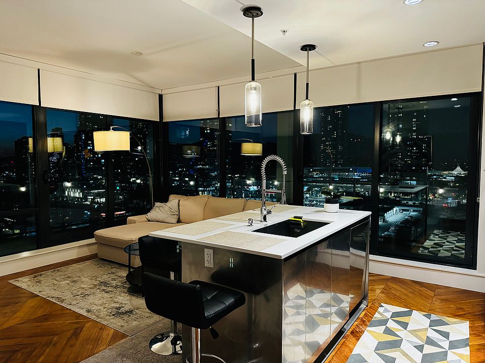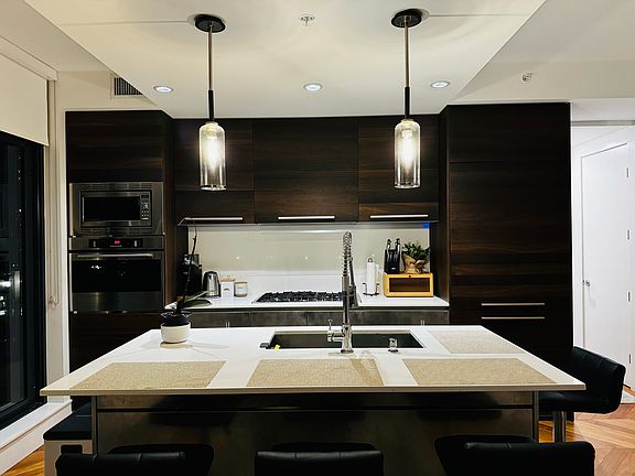 This modern and beautifully furnished 2-bedroom, 2-bathroom condo offers a perfect blend of comfort and style, ideal for those seeking convenience and luxury. The spacious open-concept living area features tasteful decor, a cozy seating arrangement, and large windows that invite natural light, creating a bright and welcoming atmosphere. The fully equipped kitchen boasts sleek countertops, stainless steel appliances, and ample storage, making meal preparation a breeze. Both bedrooms are generously sized and come with comfortable beds, premium linens, and built-in closets for all your storage needs. The master bedroom includes an ensuite bathroom with modern fixtures, a walk-in shower, and elegant finishes. The second bathroom, located near the guest bedroom, is equally well-appointed with a full-sized bathtub and contemporary design. Additional amenities include in-unit laundry, a private 450 square foot corner balcony with stunning views, high-speed internet, and access to the building's fitness center, jacuzzi, steam room and outdoor BBQ. Located in a prime neighborhood of Brentwood Town Centre close to shopping, dining, and public transportation, this condo is perfect for professionals, or couples looking for a hassle-free move-in experience. Rent includes utilities and secure underground parking. Don't miss out on this exceptional rental opportunity! Please contact with questions.