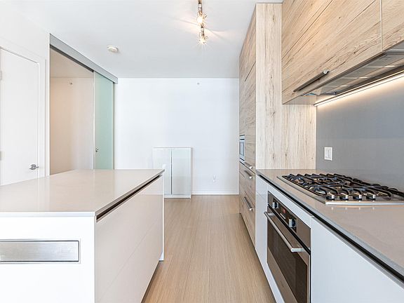 Highly sought-after 1 BR + DEN at MILANO, a luxury building by award-winning Solterra located in the heart of Brentwood. Corner unit, most efficient layout with a den that is large enough to fit a queen bed! Featuring an open concept layout, air conditioning, a large 100+ sq ft patio, an 8'7" ceiling, a designer kitchen with a full-sized Italian appliance package and a unique island with a slide-out dining table. AMENITIES: 20,000 + sqft of outdoor community space, including lounge, fire pit, BBQ/patio, children's play area, herb garden, putting green, three-storey grand lobby, concierge, guest suite, gym, steam/hot tub, bike storage/repair station, dog wash, visitor parking with EV charging. Transit & Traffic, Retail/Commercial Interface nearby