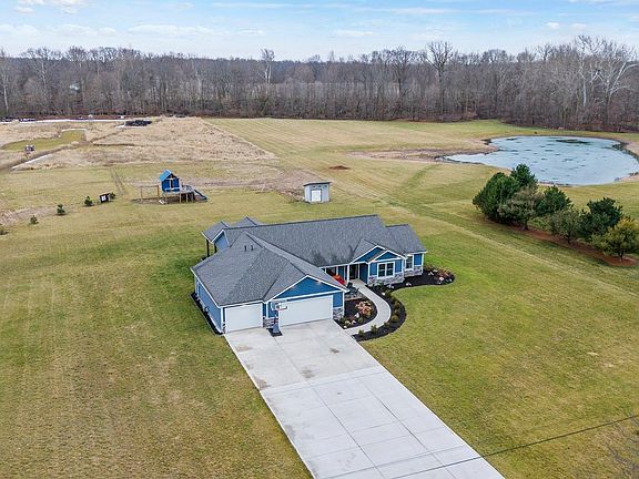 *This home also qualifies for 0% down USDA financing which has a much lower rate than most loan programs! *Nestled on nearly 4 acres, this MBN custom-built home offers a harmonious blend of modern living and rural charm plus it has the comforts of city water and sewer with no restrictions to worry about! *Boasting 4 spacious Bedrooms and 2 Full Bathrooms, the home is designed with a split-bedroom layout and a massive 3+ Car Garage. *The heart of the home is the open-concept Kitchen, complete with stainless steel appliances, ceramic backsplash & pantry closet. *Outdoor enthusiasts will delight in the rear agricultural land, ideal for hunting, gardening, and livestock. *A versatile 8x10 shed with a 6-foot roller door and suitability for animals like goats or chickens, complements the property. *The 3 Car garage is a homeowner’s dream, featuring built-in heavy-duty shelving and enough room to park multiple vehicles plus a 12x32 3rd bay for versatile use & a floored attic too. *The Primary suite features a soaking tub, dual vanity and vaulted walk-in closet for maximum storage. *Efficiency is key in this home, with high-efficiency appliances, HVAC, on-demand water heater and LED lighting throughout. *Students can attend McKenney Harrison Elementary School and Dekalb Middle School with an approved transfer request. *The expansive concrete 35x105 driveway on a quiet dead-end road offers plenty of parking and space for play and social gatherings, while the front porch paver patio invites peaceful morning coffees. *Landscape lovers will appreciate the giant green thujas and white pines, along with numerous apple, red maple, and oak trees at the property’s rear, attracting deer and supporting wildlife. *For the adventurous, a custom-built playset features swings, slides, and more, while sports enthusiasts will enjoy the 225-yard gun and bow range. *This home truly offers a blend of modern convenience, efficiency, and a nature enthusiast’s dream, making it a unique find for the right buyer. *Don't miss this one!