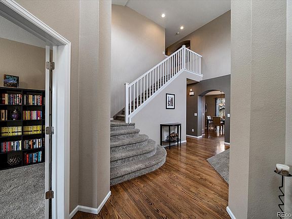 Do not miss this Vista Ridge gem, nestled in the vibrant heart of Erie. This east facing 4 bedroom, 2.5 bathroom home has it all. Home features a main floor study, bright kitchen, hardwood flooring, a cozy gas fireplace, impeccable landscaping and Rocky Mountain views galore! Upstairs, four generously sized bedrooms offer comfort and privacy, each with ample space for personalization. A full, garden-level basement provides additional brightness and flexibility, ready to adapt to your lifestyle needs. Outside, meticulous landscaping frames the home, leading to a sunset deck and patio with beautiful views. This move-in-ready residence is just a stone's throw from the Vista Ridge golf course and benefits from a wealth of community amenities. With its unbeatable location, you're always just moments away from top-rated schools, diverse shopping, and recreational opportunities.