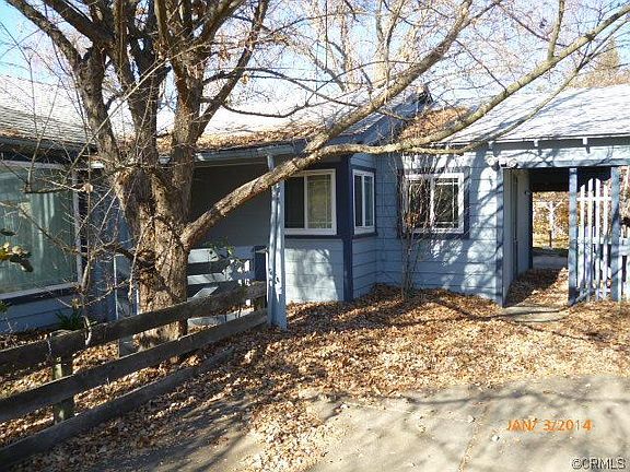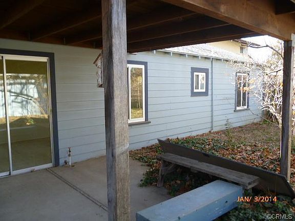 Cozy 2 bedroom 1 bath home in Durham with large front and back yard, close to town and located in a nice neighborhood. Back yard is fenced and has a covered patio. Front yard is partially fenced with nice mature trees and covered front porch. Home features a large living room with a brick fireplace, ceiling fans in living room and dining room. Bathroom has a walk in shower. Kitchen features tiled counters, dishwasher and gas stove, wood cabinets and a breakfast bar counter. Newer windows, nice roof and exterior paint. Sliding doors open to patio. Long driveway for plenty of parking. Property to sell strictly WHERE IS-AS IS... Listing office has NO INSPECTIONS ON FILE. Seller will do NO REPAIRS OR CREDITS. Buyer(s) is/are advised to investigate/inspect all aspects of the property to their contractual satisfaction.