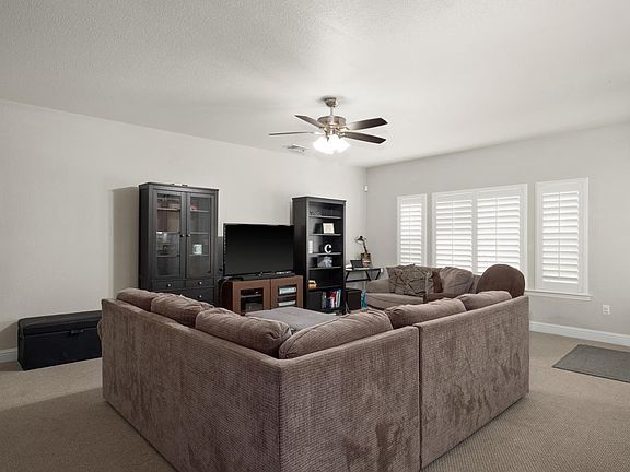 This gorgeous 4BD/2.5BA home with over 2400 sq.ft. has it all! Lots of custom features. Beautiful cabinetry with granite counter in Kitchen, Baths, and Laundry Room. Spacious Kitchen with stainless appliances, gas cooktop, pantry and breakfast bar. Tile flooring in Entry, Kitchen, Laundry Room & Baths. Impressive Living & Dining Room with vaulted ceiling. Huge Family Room with dinette area. Larger sized Master Bedroom w/French Doors opening onto the balcony and walk-in closet... Backyard has an outside fireplace and stamped concrete and RV parking. Call your Realtor today to schedule a private showing.
