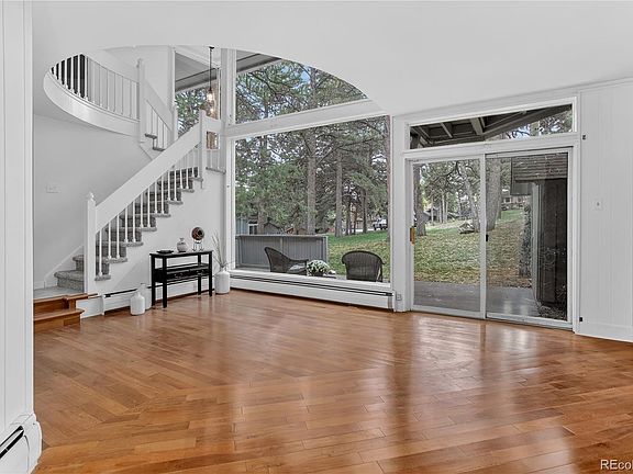 SELLER IS MOTIVATED! Beautifully updated townhome near the first fairway of Hiwan Golf Club! This model is one of the most popular due to the stunning architectural design featuring a gracefully curved upper hallway overlooking both the spacious main level and the serene greenbelt. Huge windows bring the outdoors in, often featuring elk and deer, not too mention loads of sunshine! With warm hardwood floors in the Living and Dining Rooms, the updates of September 2025 include remodeled Bathrooms and Kitchen, with new carpet, tile floors, cabinets, backsplash, lighting, countertops, appliances, and more! There's even a brand new washer/dryer! Two rock fireplaces grace both the Living Room and the Primary Bedroom. Located in Hiwan Hearths, this townhome is quite welcoming as you enter the lushly landscaped Courtyard 2 with only nine other townhomes. This quiet community is perfectly located in north Evergreen, with easy access to I-70 and both downtown Denver and the fabulous ski resorts Colorado is famous for! Nearby are many local conveniences, including restaurants, shopping, medical and veterinary services, schools, and much more. Don't miss this opportunity to live in this wonderful neighborhood! Being sold "AS IS."