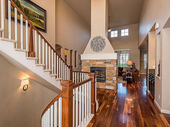 Stunning Solterra Raphael Ranch + Bonus Skyroom w/ Beautiful Custom Features Throughout! Located on a Cul-de-sac w/ 3-car garage, large 9,213 SF Lot & Red Rocks Mountain Views! Elegant entry w/ vaulted ceilings, curved open staircase, double-sided stone fireplace. Open floorplan w/ walnut wood floors, custom upgraded kitchen, formal dining, nook, living room, butler & walk-in pantries and dry bar are perfect for entertaining! Mainfloor master is a private retreat w/ patio access - includes home stereo speakers, walk-in closet, masterbath w/ gorgeous travertine, porcelain and deco tile details, quartz counters, soaking tub and spa sprayers in the shower! Lower level offers rec room w/ surround sound, wet bar, 2 bedrm suites w/ well-appointed baths ; Nice executive office w/ french doors ; Powder bath w/ model-like finishes ; Custom lighting throughout the home ; Enjoy mountain views & sunsets from the skyroom deck ; Large backyard w/2 patios, mature landscaping & flagstone firepit! WOW!