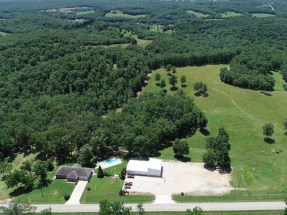 All brick home, shop and RV building/apartment/workshop, inground pool, stocked pond , paved road, all on 15 acres+/-. Excellent location for this combo of pasture and woods. It's all here. Home has granite counters, Andersen windows, full walkout basement. Covered back porch patio and outdoor entertaining, stamped concrete decking and great country views for your private estate. Energy efficient features in home. 3200+/- sq.ft.shop with RV parking, room for car collectors, hobbies or stuff! So many options with this property that you won't find another like it. Few miles to Hwy 60, close to shopping and amenities. No restrictions. Could be good home/business operation too. Part of shop could be converted for some livestock. See drone photos for birds eye views. Quick move in ready.