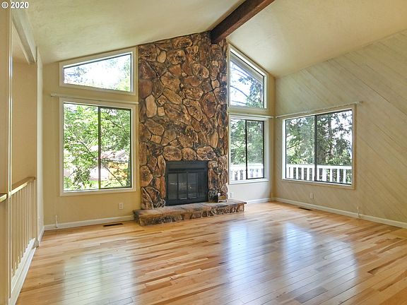 This gorgeous split level home features vaulted ceilings, fresh paint inside, floor to ceiling rock fireplace & beautiful solid hickory floors in main living area. Separation of space with 2 beds/2 baths on main level, & 1 lower w/bath. Lower level has wet bar, pellet stove & sliding glass door. Main-level master with lovely tile shower, walk-in closet. Spacious decks on every level overlooking yard with mature landscaping. Just minutes to UO, 20 minutes to Riverbend! Two-car garage with safe.