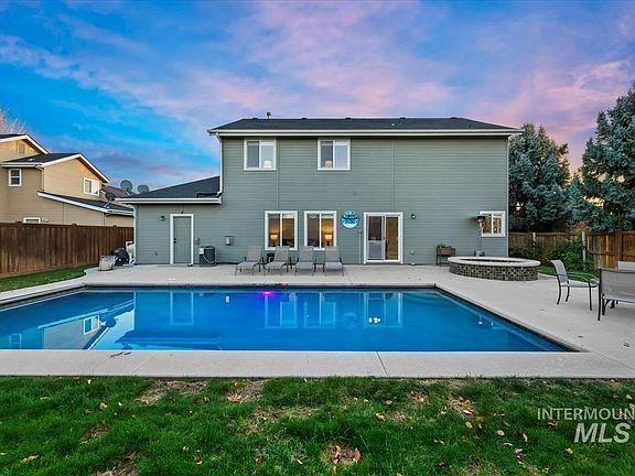 Seller is offering a $7500 credit, 1 year home warranty & 1 year pool warranty with a full price offer! Welcome to the perfect family home built by Pioneer Homes in NW Meridian, where this wonderful 4-bedroom, 2.5-bathroom with a built in pool & hot tub awaits. Nestled in one of the Valley's premier school districts, it's the ideal place to call home. Inside, you'll find a spacious family room, office space, generously sized master suite, as well as the convenient utility room, provide a layout that's both functional and private. Hardwood graces both the kitchen and dining areas, while stainless steel appliances and a tasteful tile backsplash add modern elegance to the heart of this home. With an oversized 4-car garage, you'll have ample space for storage, a dedicated workspace, or your cherished toys. And for those cozy evenings at home, the corner fireplace beckons, creating the perfect ambiance for relaxation. Located in close proximity to shopping, restaurants and entertainment, this home has it all.